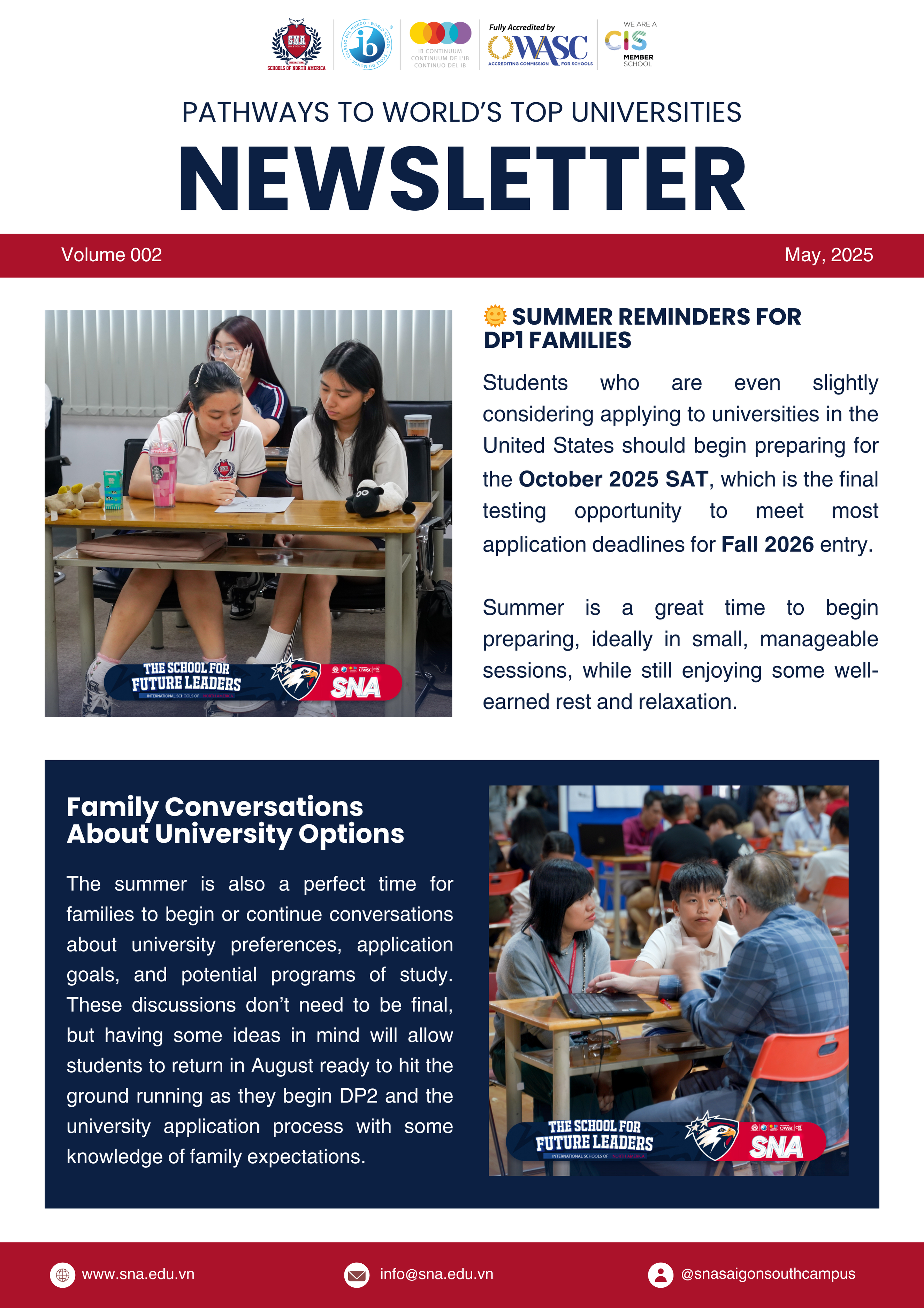 This month’s issue celebrates our Grade 12 students as they complete their IB exams and receive exciting admission offers from top universities in the U.S., Canada, and Australia. It also includes guidance for Grade 11 families on SAT preparation and meaningful family conversations during the break.