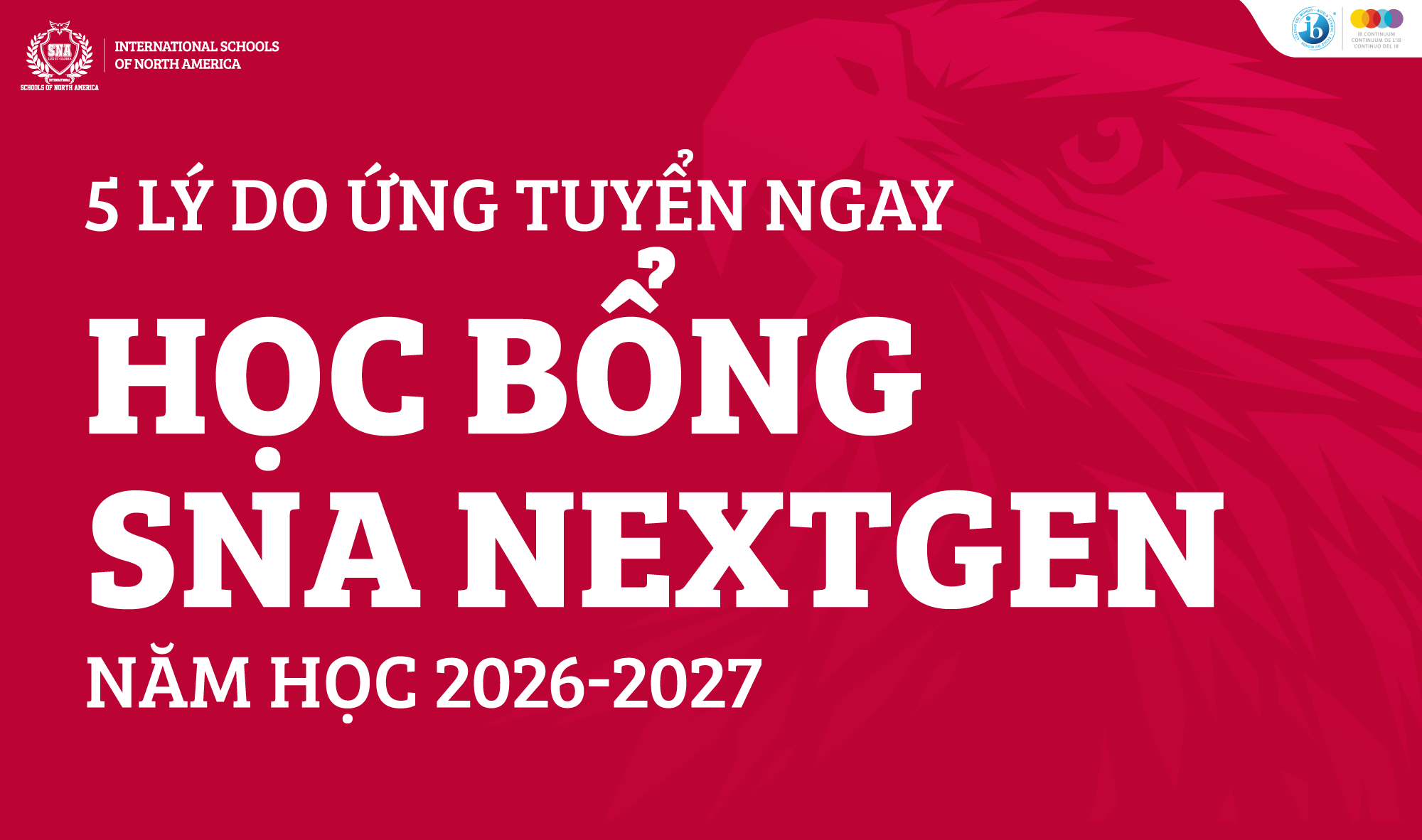 Học bổng NextGen 2026-2027 hiện đã chính thức nhận hồ sơ, mang đến cơ hội theo học chương trình Tú tài Quốc tế (IB) toàn phần với mức hỗ trợ học phí lên đến 50% trong nhiều năm. Với hình thức xét tuyển liên tục, nhiều suất học bổng giá trị sẽ được trao ngay khi hồ sơ đạt yêu cầu.
