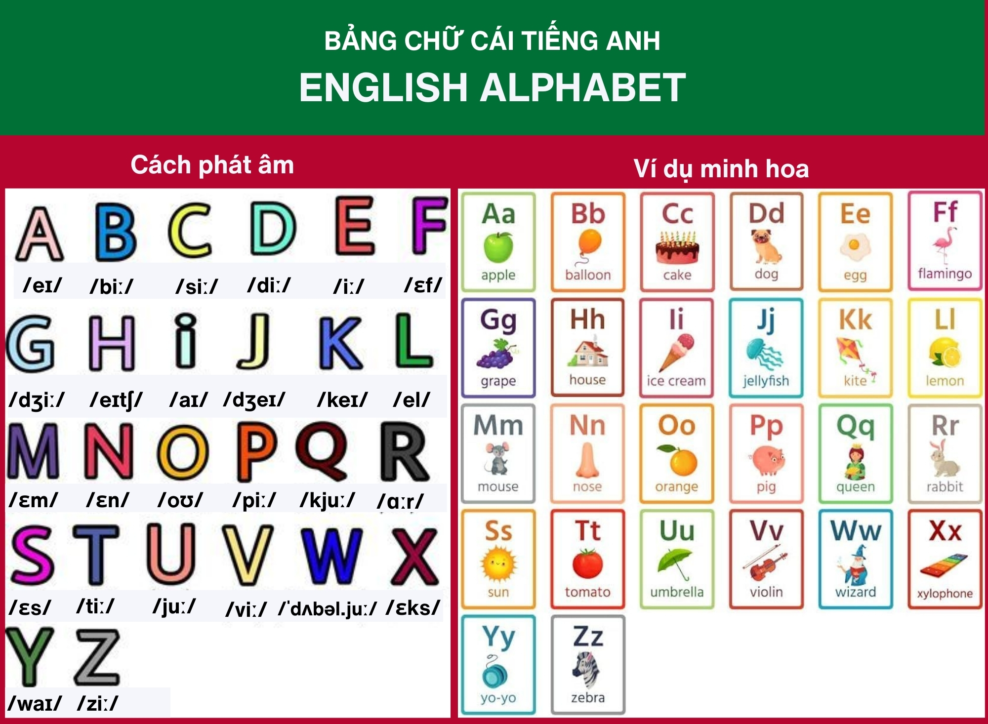 Cấu trúc bảng chữ cái tiếng Anh đầy đủ