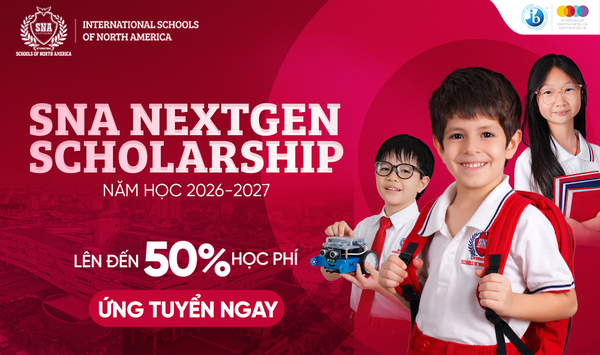 Tại SNA cơ sở Nam Sài Gòn, chương trình học bổng NextGen dành cho bậc tiểu học (PYP) có thể hỗ trợ từ 20% đến tối đa 50% học phí. Với những học sinh nhập học từ lớp 1, học bổng có thể được duy trì trong 5 năm tiểu học nếu tiếp tục đáp ứng các tiêu chí học tập và phát triển của chương trình.